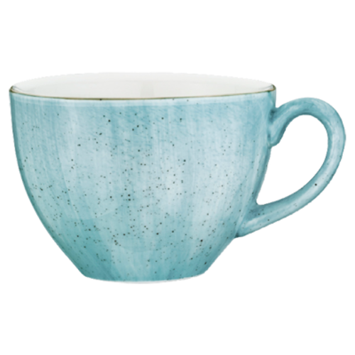 Bonna Coffee Cup, 7-1/2 oz., 3-1/2" dia. x 2-5/8"H, round, with handle, hand painted, chip and scratch resistant, microwave and dishwasher safe, porcelain, Rita, Aqua (priced by each, packed 6 each per case, case cannot be broken)