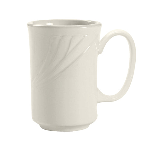 Mug, 8 oz., 2-7/8" dia. x 4-1/8"H, embossed pattern, microwave & dishwasher safe, oven proof, fully vitrified, ceramic, AlumaTux®©, Specialty, Pearl White