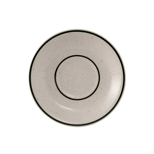 Saucer, 6" dia., round, coupe, narrow rim, microwave & dishwasher safe, oven proof, fully vitrified, lead-free, ceramic, TuxCare®©, Healthcare, Emerald, American White/Eggshell with Green Speckle