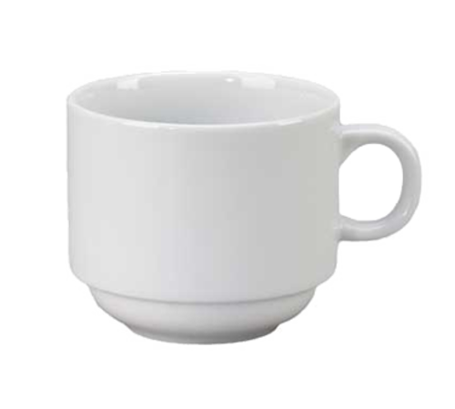 Cup, 8 oz., 3", with handle, stackable, polished foot, porcelain, bright white, Premium, Euro Collection, Alpine (fits AL-2)