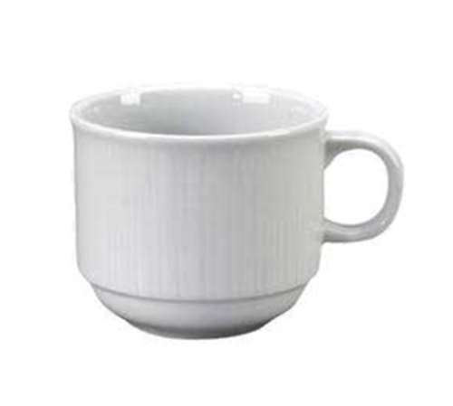 Cup, 8 oz., 3-1/8", with handle, stackable, embossed, polished foot, porcelain, bright white, Premium, Euro Collection, Crystal Bay (fits CB-2)
