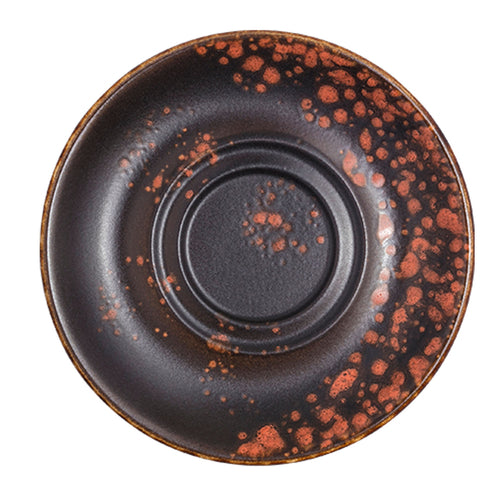 Saucer, 6" dia., round, double well, hand painted, fully glazed foot, scratch resistant, aluminum oxide reinforced body, porcelain, matte black/terra cotta reactive glaze, Premium, London Moonstone Collection