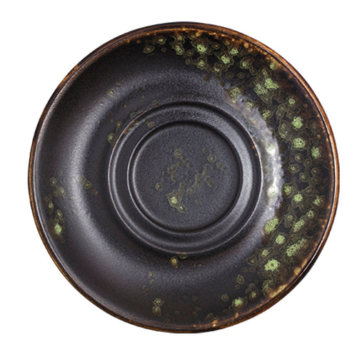 Saucer, 6" dia., round, double well, hand painted, fully glazed foot, scratch resistant, aluminum oxide reinforced body, porcelain, matte black/jade reactive glaze, Premium, London Moonstone Collection