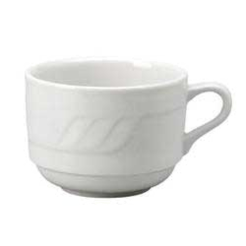 Cup, 8 oz., 3-1/2", round, with handle, stackable, sculpted lines, white, American Classics, Sausalito Collection (fits SAU-2)