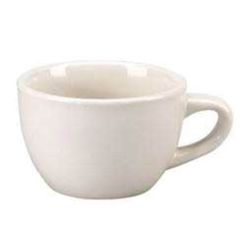 Cup, 8 oz., 3-3/4", round, short, with handle, polished foot, microwave & dishwasher safe, white, Royal, American Classics, Vista Collection (fits VRE-2)