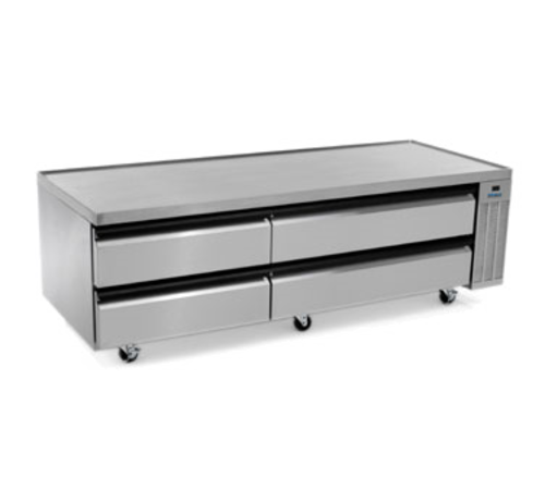 High Capacity Refrigerated Chef Base, two-section, 79"W, (4) drawers, marine edge top, automatic defrost, aluminum interior, stainless steel & galvanized exterior, 4" casters (2 with locks), side-mounted self-contained refrigeration, 134A, 115v/60/1-ph, 3.1 amps, NEMA 5-15P, cETLus, ETL-Sanitation