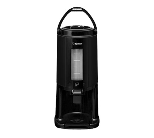 Thermal Server, 2.5 liter (84 oz.), with base, 17-1/16" H, 8-5/8" W, black brew-thru lid, gravity flow, black with sight glass, glass liner