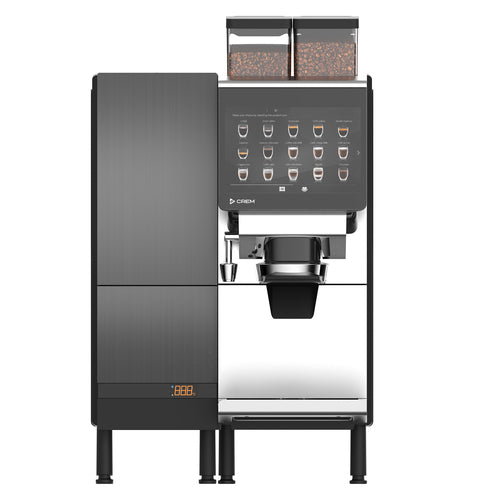 Unity1 PLUS (ES18-BTB_MILK_US) Espresso/Coffee Maker, super-automatic with 10" touch screen, (1) 18g espresso brewer & (1) 14g filter brewer, (2) 2.2lb. bean hoppers, (2) grinders, double pour spout, (1) 1 gallon fresh milk (FMU) refrigerated unit, separate hot water outlet, multiple recipe options, Smartfoam dry/wet frothing system, cup sensor, door & cup lights, drip tray, waste bin, plastic exterior, 208v/60/1-ph, 15 amps, NEMA 6-20P, UL, cUL, NSF (**CREM Authorized Install is required for warranty validation**)