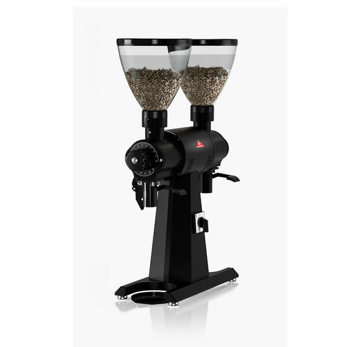 Mahlkonig EKK43 Double Coffee Grinder, (2) 3.31 lb capacity hoppers, 98 mm cast steel grinding discs, high grinding capacity, adjustable grind settings, matte black finish, 1760 RPM, 120v/60/1-ph, 1300 watts, CE, ETL, ETL-Sanitation