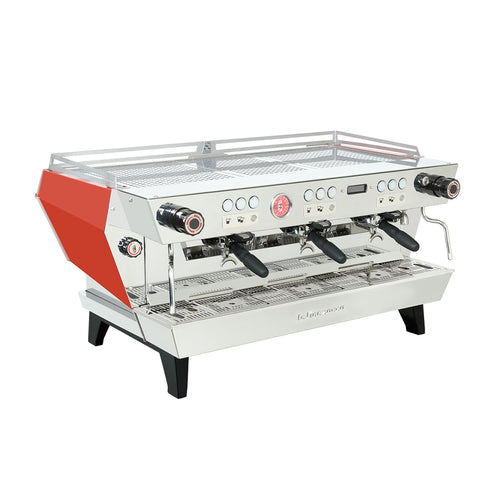 La Marzocco KB90 Espresso Machine, 3 group, automatic, programmable coffee dosage, straight-in portafilters, auto steam flush, barista lights, (2) boilers, (3) 1.3L espresso boilers, 11L steam boiler, PID coffee brew and steam boiler temperature control, multi-function digital display with shot timers, (2) pro touch steam wands, (1) hot water tap with economizer, stainless steel & enamel body, 208-240v/60/1, 7300-7800 watts, NSF, UL/ETL listed