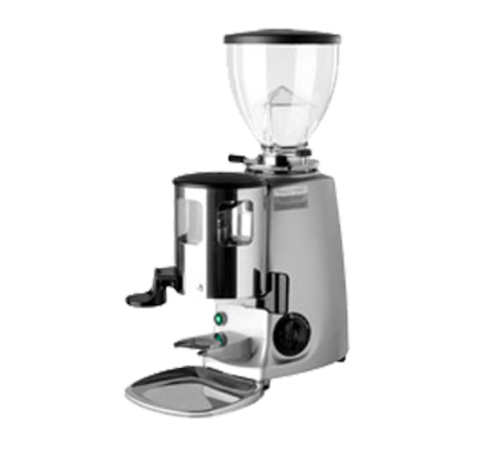 Mazzer Mini Timer Espresso Coffee Grinder, 1.3 lb hopper capacity, 54mm flat grinding burrs, adjustable dispensing doser, adjustable grind setting, timer on/off switch, removable hopper, 110v/60/1-ph, 250 watts, CE, UL, ETL-Sanitation