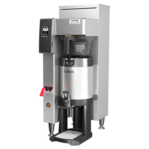 XTS™ Series Coffee Brewer, single, 1-1/2 gallon capacity, touchscreen operation, customizable screen, adjustable brew time and volume, streamlined programming and diagnostics, manual hot water service, 2 x 3.0kW heaters, 200-240v, 1-ph, 2+G wires, 22.1 - 25.5 max amp draw, 4.7 - 6.1kW, terminal block, 11.5 gallons per hour, UL, cUL, NSF (Use with FETCO D449 - sold separately) (Manufactured standard with plastic brew basket - metal brew basket sold separately)
