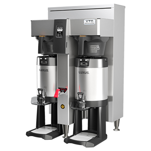 XTS™ Series Coffee Brewer, twin, 1.5 gallon capacity, touchscreen operation, customizable screen, adjustable brew time and volume, streamlined programming and diagnostics, manual hot water service, 3 x 3.0kW heaters, 208-240v, 3-ph, 3+G wires, 19.5 - 22.5 max amp draw, 6.9 - 9.1kW, terminal block 17.4 - 23.0 gallons per hour, UL, cUL, NSF (Use with FETCO D449 - sold separately) (Manufactured standard with plastic brew basket - metal brew basket sold separately)