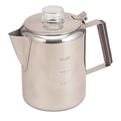 HIC Percolator, 9 cup, dishwasher safe, 18/8 stainless steel (boxed)