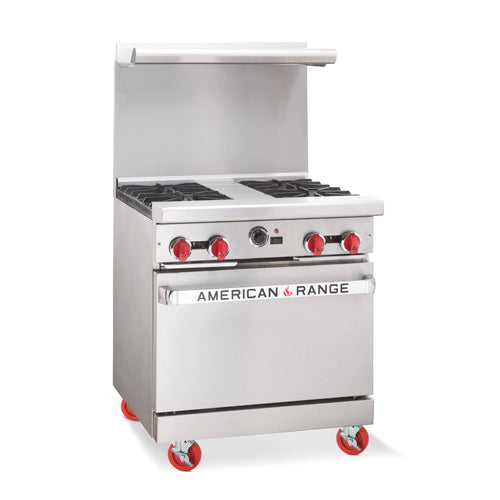 Culinary Series Heavy Duty Restaurant Range, gas, 30", (4) 32,000 BTU open burners with spreader, standard oven, (1) rack, stainless steel front, sides & high shelf, 6" adjustable chrome plated legs, 48.0kW, 163,000 BTU, cETLus, ETL-Sanitation , Made in USA