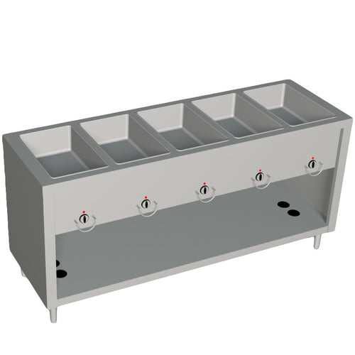 AeroServ™ Hot Food Unit, gas, 74"W x 24-1/2"D x 36"H, 20 gauge stainless steel top, (5) galvanized steel dry heat wells, individual valve controls, gas regulator, (5) standing pilots, paint grip steel body & undershelf, 6"H stainless steel legs & adjustable feet, 12,500 BTU, cULus, UL EPH Classified, CSA Star