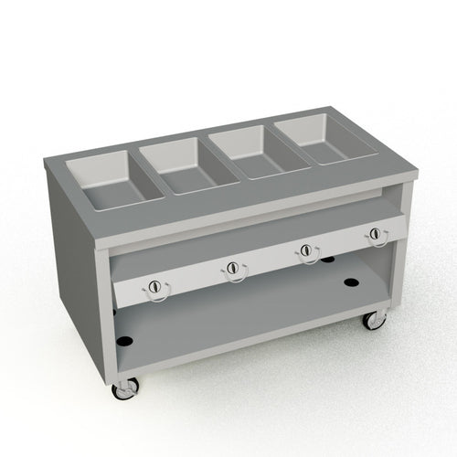 Thurmaduke™ Hot Food Unit, gas, 60"W x 32"D x 36"H, 16ga stainless steel top, (4) stainless steel dry heat wells, (4) stainless steel water pans, safety pilots, gas regulator, valve controls, dish shelf, 20ga paint grip steel body & undershelf, 6"H stainless steel legs with adjustable feet, CSA STAR, UL EPH Classified