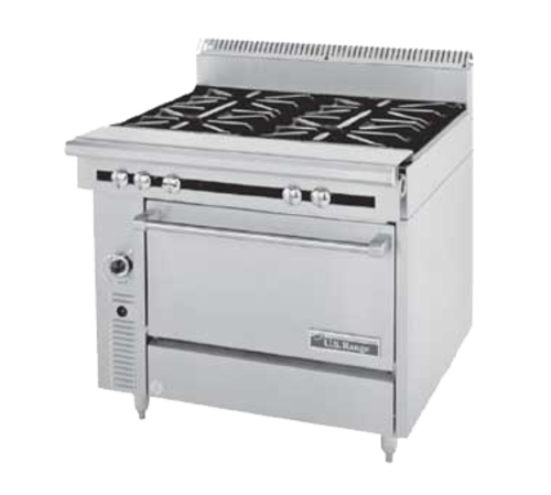 Cuisine Series Heavy Duty Range, gas, 36", modular, (4) 30,000 BTU open burners, 6" backguard, stainless steel front & sides, 120,000 BTU , CSA Flame, CSA Star, NSF (US Range)