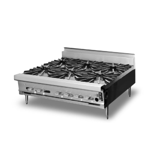 Legend™ Heavy Duty Range, gas, 36", countertop, (3) 30,000 BTU open burners, (3) 30,000 BTU step-up open burners, stainless steel front & 4" flue riser, black sides, 4" high adjustable legs, 150,000 BTU, NSF, cETLus, CE