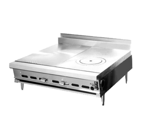 Legend™ Heavy Duty Range, gas, 36", (3) 12" gradient heat hot tops, countertop, stainless steel front & 4" flue riser, black sides, 4" high adjustable legs, 55,5000 BTU, NSF, cETLus, CE