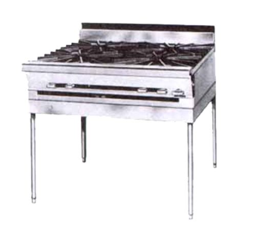 Legend™ Heavy Duty Range, gas, 36", (4) 18" 30,000 BTU open burners, stainless steel front & 4" flue riser, black sides, stainless steel modular stand with undershelf & tubular legs, 120,000 BTU, NSF, cETLus, CE