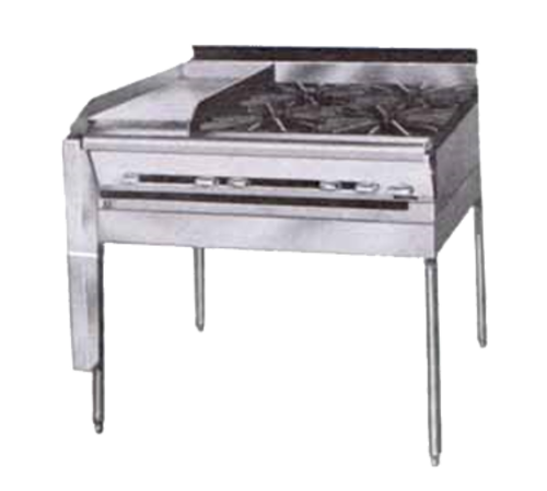 Legend™ Heavy Duty Range, gas, 36", (1) 12" griddle (L), 3/4" thick, manual control, (4) 30,000 BTU open burners (R), stainless steel front & 4" flue riser, black sides, stainless steel modular stand with undershelf & tubular legs, 135,000 BTU, NSF, cETLus, CE