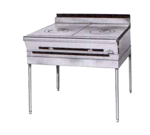 Legend™ Heavy Duty Range, gas, 36", (2) 18" hot tops with rings/covers, stainless steel front & 4" flue riser, black sides, stainless steel modular stand with undershelf & tubular legs, 70,000 BTU, NSF, cETLus, CE