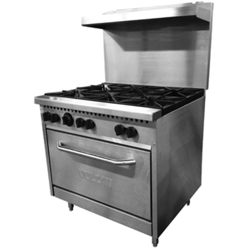SX Series Restaurant Range, natural gas, 36", (6) 28,000 BTU burners with lift-off burner heads, standard oven, stainless steel front, sides, backriser & lift-off high shelf, 6" adjustable legs, 198,000 BTU, ETL-Sanitation