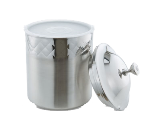 Cold Wave Ice Cream Container, 3 gallon, 10-5/8" dia. x 11"H, round, diamond design, triple wall, pre-freezing bowl keeps food cold for 8 hours at ambient temperature, stackable plastic cover, stainless steel