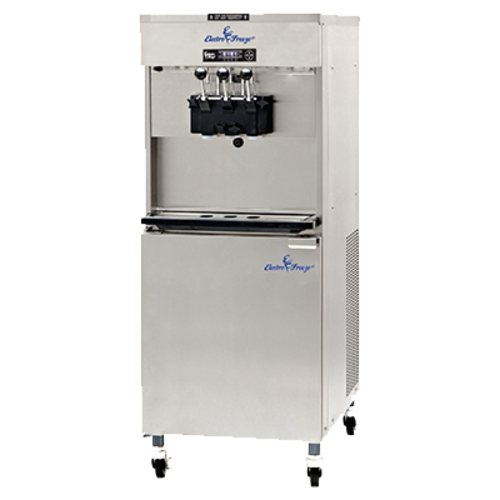 Genesis Series™ Pressurized Soft Serve Freezer, floor model, self contained refrigeration, (2) 5 qt. freezing cylinders, (2) 24 qt. mix hoppers, VQM™ system, LED display, dual controls, refrigerated mix storage base, stainless steel interior & exterior, (2) 2 HP beater motors, NSF, cULus (Go to the Electro Freeze web site link to locate your distributor for pricing & warranty information)