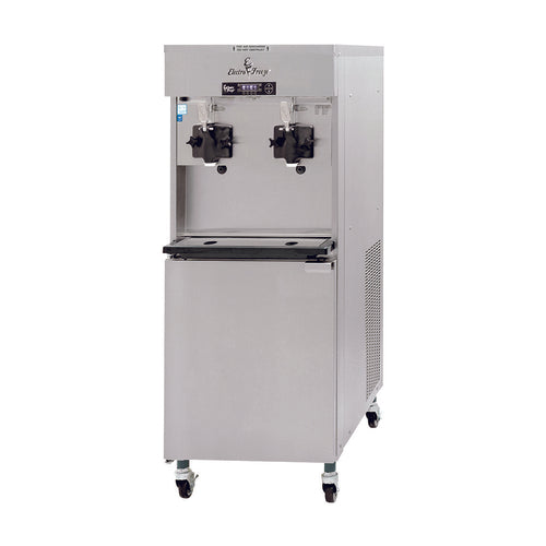 Genesis Series™ Pressurized Soft Serve Freezer, floor model, self contained refrigeration, (2) 5 qt. freezing cylinders, (2) 26 qt. mix containers, VQM™ system, LED display, dual controls, refrigerated mix storage base, stainless steel interior & exterior, (2) 2 HP beater motors, NSF, cULus (Go to the Electro Freeze web site link to locate your distributor for pricing & warranty information)