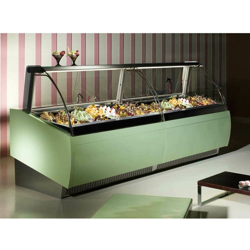 Passion Gelato/Ice Cream Display Case/Showcase, 57.5"W, deck only, holds (16) gelato pans, curved front glass, self-contained refrigeration, 220v/60/1/ph, 7.0 amps, CE, ETL