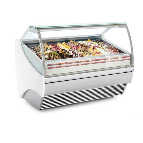 TL-Series Gelato/Ice Cream Display Case/Showcase, 49.5"W, holds (12) 5 liter pans, curved/tempered double pane heated glass with hydraulic open, digital temperature control panel, casters, 220v/60/1-ph, 10.0 amps, CE, ETLus, ETL-Sanitation