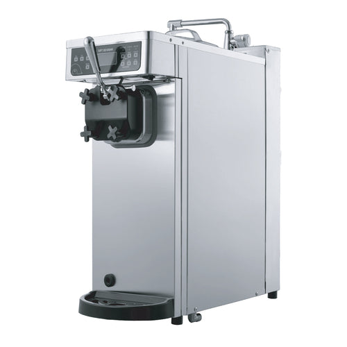 Mini Soft Serve Machine, countertop, single flavor, with pasteurization heat treatment, 3.2qt (0.8gal) hopper, 1.7qt (0.42gal) cylinder, 26.5 lbs/hr, air cooled, gravity fed, 1-7/8 HP, 1.4kW, 115V/60/1-ph, CE, cETLus, ETL-Sanitation, UL