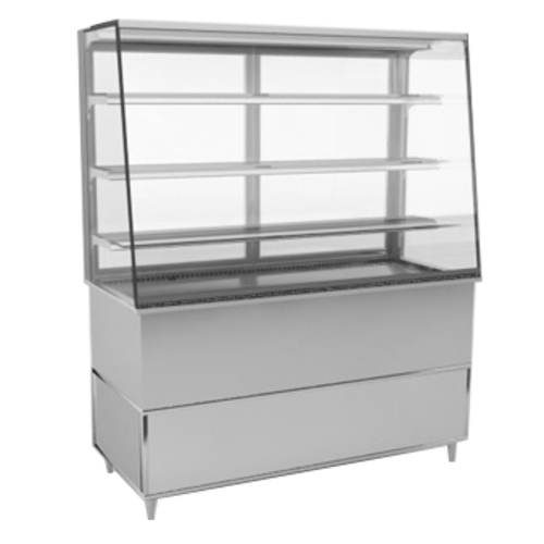 Vienna Cold Display Case, drop-in or slide-in, full service, 57-1/8"W, bottom mount self-contained refrigeration, slanted glass profile, insulated glass front, top & side panels, tilt-out front glass, (2) hinged rear see-through doors, (3) adjustable glass shelves, programmable digital controller, LED interior lighting, 304 stainless steel exterior, 1/2 HP, cETLus, ETL-Sanitation