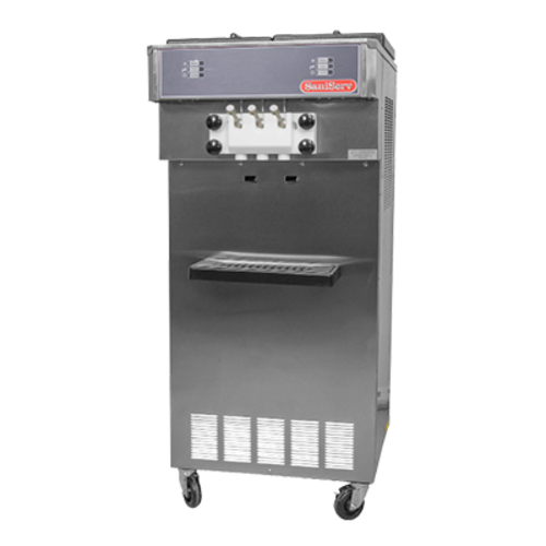 Soft Serve/Yogurt Twist Freezer, floor model, air or water cooled, self-contained refrigeration, 2 heads, 17 qt. mix capacity (per side), welded steel frame, stainless steel exterior, electronic consistency control, automatic audible/visual mix out, day/night switch, (2) 1 HP dasher, (2) 2 HP compressor, casters included, UL, cUL, NSF