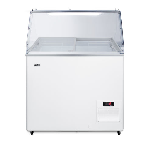 Display Case Dipping Cabinet, 30"W, 7.2 cu.ft. capacity, (4) 3 gallon tub display & (2) 3 gallon tub storage capacity, (2) tempered glass sliding locking lids, sneeze guard, & light, digital thermostat, -13°F to +23°F temperature range, (2) epoxy-coated wire baskets, manual defrost, white exterior, white painted steel interior, self contained side-mounted refrigeration, R290a Hydrocarbon refrigerant, 115v/60/1-ph, 7.2 amps, ULC, UL, UL-Sanitation