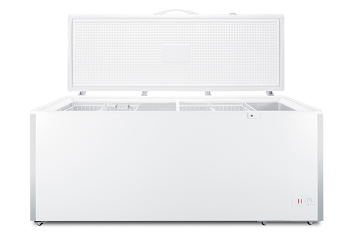 Chest freezer, 19.8 cu.ft., manual defrost, counterbalanced lid, keyed lock, 3 1/2" thick insulation, stainless steel front corner protectors, hammered aluminum interior, dial thermostat, (4) storage baskets, visual temperature alarm, (6) preinstalled rollers, white exterior finish, -10 to -26C temperature range, R290a hydrocarbon refrigerant (CARB compliant), 115V/60 Hz, ETL, ETL-Canada, ETL-S (Commercial)