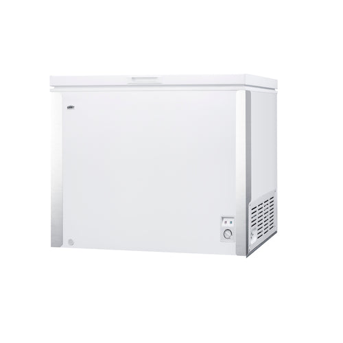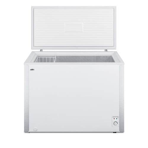 Chest Freezer, 44"W, 9 cu.ft. capacity, lift-up lid with remain open feature, manual defrost with drain, removable storage baskets, seamless interior, dial thermostat, -30°C to -12°C temperature range, indicator lights, (2) stainless steel corner protectors, hammered aluminum interior, white exterior, (2) casters, R600a Hydrocarbon refrigerant, 115v/60/1-ph, 5.0 amps, UL, ULC, UL-Sanitation (Commercial)