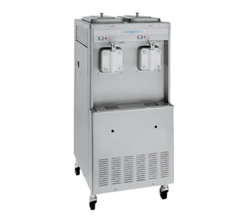 Soft Serve Freezer, floor model, self-contained, two flavor, (2) 20 qt. hoppers, (2) 7 qt. freezing cylinders, indicator lights, solid state controls, standby, stainless steel finish, R404A, (2) 2 HP motors, NSF, cULus listed (Go to the Taylor web site link to locate your distributor for pricing & warranty information)