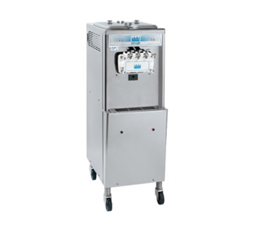 Soft Serve Freezer, floor model, self-contained, twin twist, (2) 14 qt. hoppers, (2) 3.4 qt. freezing cylinders, indicator lights, electronic controls, standby, drain assembly, thermo-plastic freezer door, door interlock system, recessed pull handles, (4) mounted casters (2 with locks) stainless steel finish, R404A, (2) 1-1/2 HP motors, NSF, cULus listed (Go to the Taylor web site link to locate your distributor for pricing & warranty information)