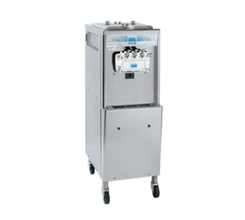 Soft Serve Freezer, floor model, self-contained, twin twist, (2) 14 qt. hoppers, (2) 3.4 qt. freezing cylinders, indicator lights, electronic controls, standby, drain assembly, stainless steel finish, R404A, (2) 1-1/2 HP motors, NSF, cULus listed (Go to the Taylor web site link to locate your distributor for pricing & warranty information)