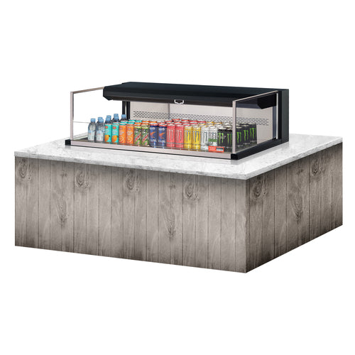 Drop-In Horizontal Open Display Case, low profile, 6.3 cu. ft. capacity, 47-7/8"W x 33"D x 37-3/4"H, self-contained refrigeration with self-cleaning condenser, deck only, tempered glass front shield & side walls, solar digital thermometer, digital electronic thermostat with defrost control, LED interior lighting, stainless steel interior, back wall & deck pan, specify exterior color, front air intake & rear air discharge, includes night cover, R290 Hydrocarbon refrigerant, (2) 3/4 HP, 115V/60/1, NEMA 5-20P, 13.6 Amps, CSA-Sanitation, cCSAus