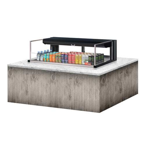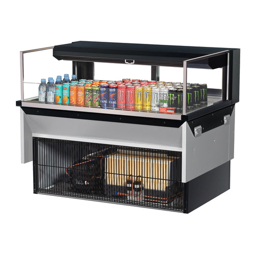Drop-In Horizontal Open Display Case, low profile, 6.3 cu. ft. capacity, 47-7/8"W x 33"D x 38-3/8"H, self-contained refrigeration with self-cleaning condenser, deck only, tempered glass front shield & side walls, rear sliding glass doors, solar digital thermometer, digital electronic thermostat with defrost control, LED interior lighting, stainless steel interior, specify exterior color, front air intake & rear air discharge, includes night cover, R290 Hydrocarbon refrigerant, (2) 3/4 HP, 115V/60/1, NEMA 5-20P, 13.6 Amps, CSA-Sanitation, cCSAus