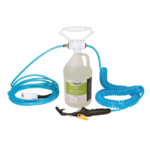 Portable Wand Sprayer Station, 30 ft coil hose, 25 ft water supply line, dispenses diluted LEXX™ liquid sanitizer & cleaner concentrate, solution jugs sold separately