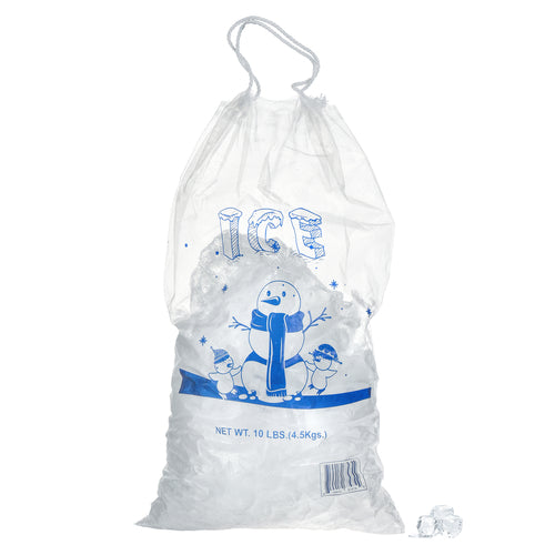 Plastic Ice Bag with Cotton Drawstring, 10 lb.capacity (1.5 mil), clear, (100 bags per case)