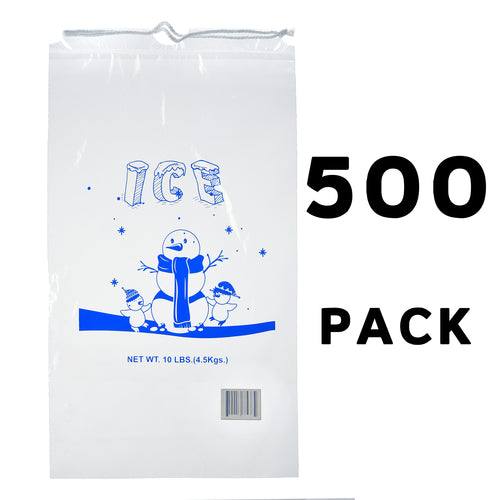 Plastic Ice Bag with Cotton Drawstring, 10 lb.capacity (1.5 mil), clear, (500 bags per case)