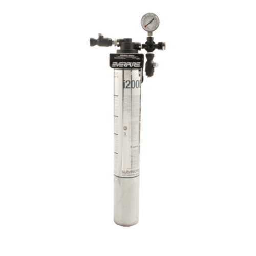 Water Filter System, InsurIce®, single cart, 0-125 pressure gauge display, I2000 filter cartridge & red plastic flushing tubing, cartridge head with water pressure gauge