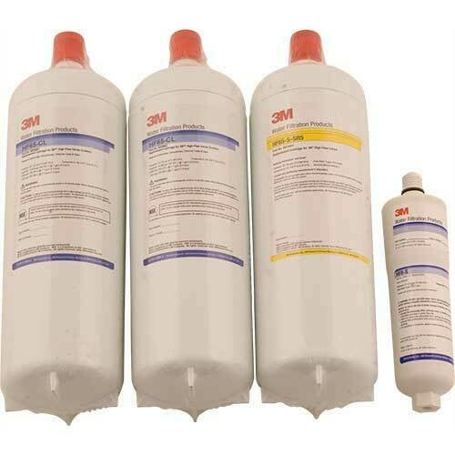 3M® Water Filtration Cartridge Kit, 4-1/4"W x 15"H, 4-piece, includes: (2) HF65-CL, (1) HF8-S, & (1) HF65S-SR5 filter, red caps, white (replaces 3M® 56138-25)