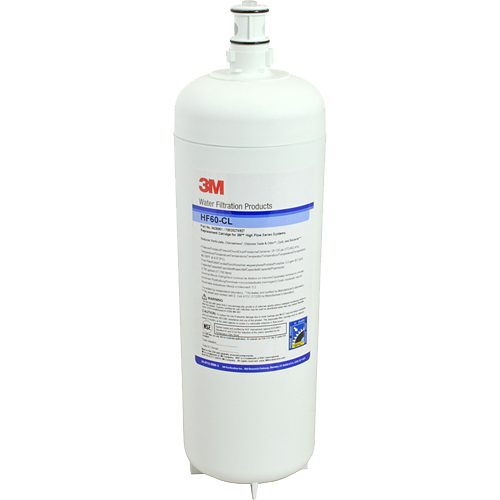 Water Filter Cartridge, high flow beverage, 14-7/8" x 4", 4700 gallon capacity, 2.2gpm, 25-125psi/172-862 KPA, .2 micron filtration, 40° to 100° F temperature range, (2) O-rings, particulates, chloramines, chlorine taste/odor, cyst, bacteria, white, plastic cartridge housing, (Hf60-Cl), 3M®